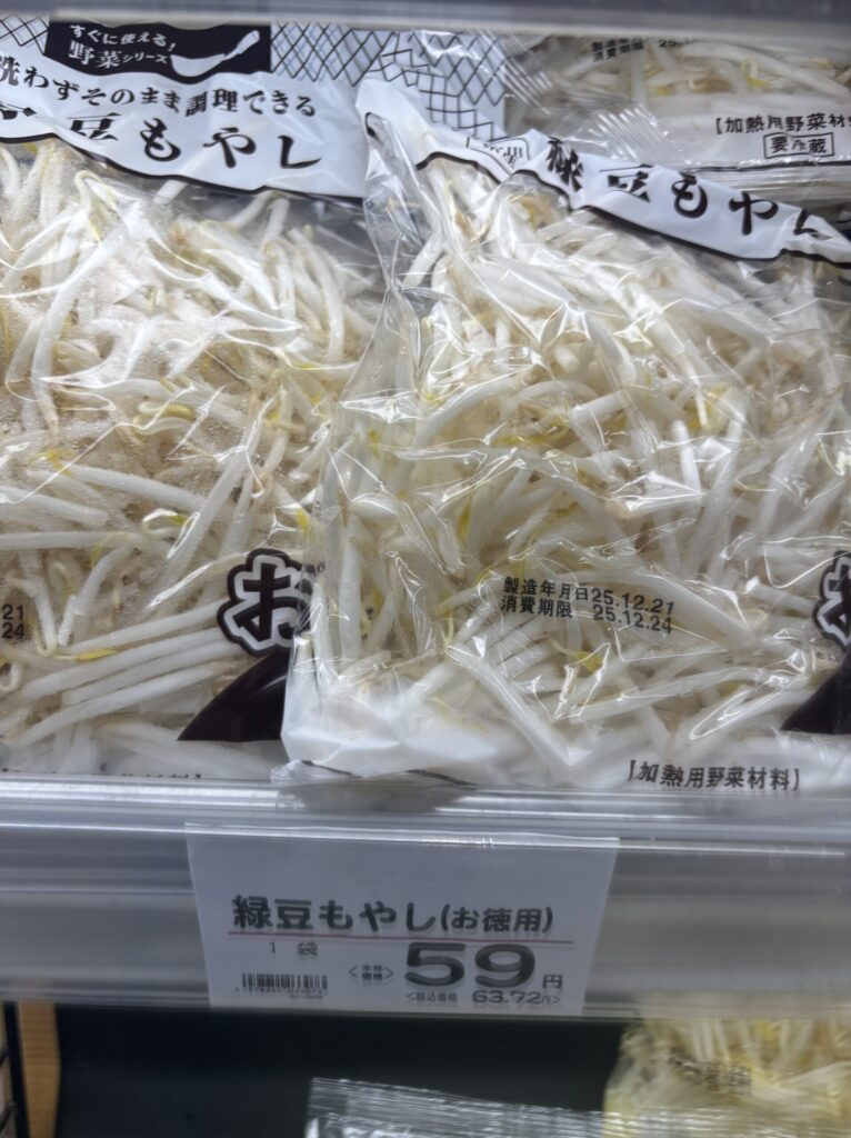 最後はもやしです。ラーメンに入っている野菜ランキングで堂々の1位ではないでしょうか。コスパ最強野菜ランキングとの2冠の可能性すらあります。とりあえずどんな味のラーメンにもあうし、とにかく価格が非常に安い。いや、異常に安い。安すぎる。もやし農家の方々が心配になるくらいには安いです。もちろん我が家でも使用頻度の高い1軍食材です。1袋420g入って税抜59円って。1g当り0.14円!そんな食材あります?あるんです!もやしです。