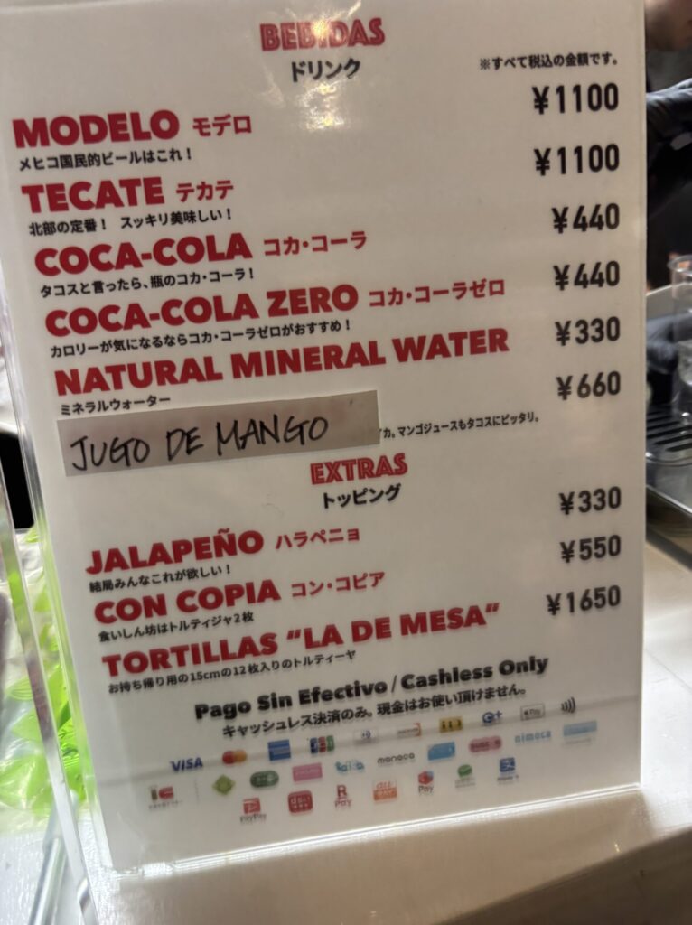 いざ店内へ!一歩入るともうそこはちょっとしたメキシコでした。行ったことないですけど…。この日は店員さんも全て外国の方だったので、飛び交うスペイン語?にタコスの香り?もうほぼ現地やん。行ったことないですけど…。