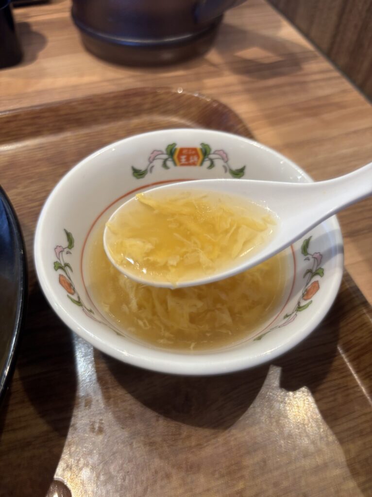 炒飯のお米はぱらっとしてふわふわ玉子やトロトロの餡と一緒に食べてよし、炒飯単体で食べてもよしと一つの料理で2度楽しめるところも天津炒飯の醍醐味です。一緒についてくるこのスープもやさしい味わいで美味しいんですよね。